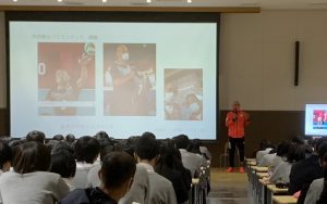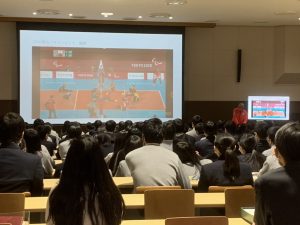 11月11日(木)、3年生の人権LHRは、「生きるということ~命の大切さ~」と題して、「パラリンピック」・「シッティングバレーボール」選手の田中浩二さんのお話を伺いました。